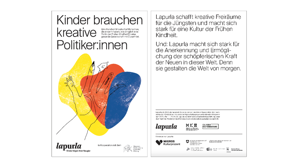 - Fehlende Politik der frühen Kindheit: In den letzten Jahren haben Bund, Kantone und Gemeinden, aber auch private Initiativen und freie Stiftungen durch Konzepte, Studien und Förderprogramme begonnen, die Rahmenbedingungen für das Aufwachsen von Kindern zu verbessern. Doch der Handlungsbedarf bleibt gross. Wenn es nicht gelingt, eine kohärente Politik auf den verschiedenen staatlichen Ebenen unter Beizug der Zivilgesellschaft zu etablieren, bleiben die bisherigen Massnahmen Patchwork und wirkungsarm. Deshalb ist für eine wirkungsvolle kulturelle Teilhabe ab der frühen Kindheit die Zusammenarbeit der Bereiche Bildung, Kultur, Soziales, Soziokultur und Gesundheitsförderung zwingend notwendig.